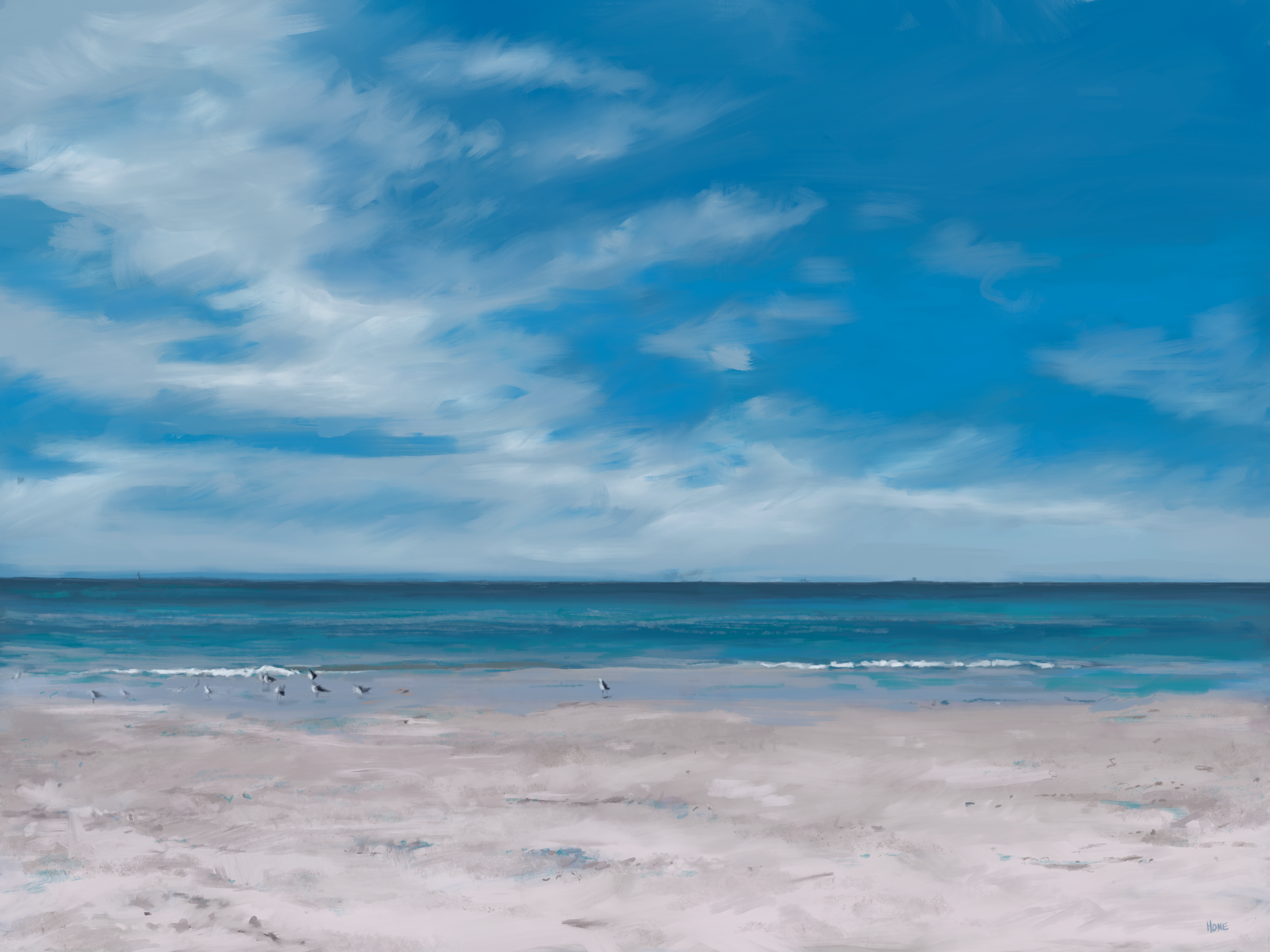 Gallery Framed artwork ‘Peace at Beach’ by artist Liam Hone (Large 30”x40” size)